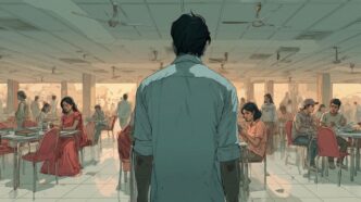 Behind Dhara: sighs, shoe scuffs, a girl’s phone tap-dancing against her palm. Someone’s bracelet grazed her neck. She flinched.