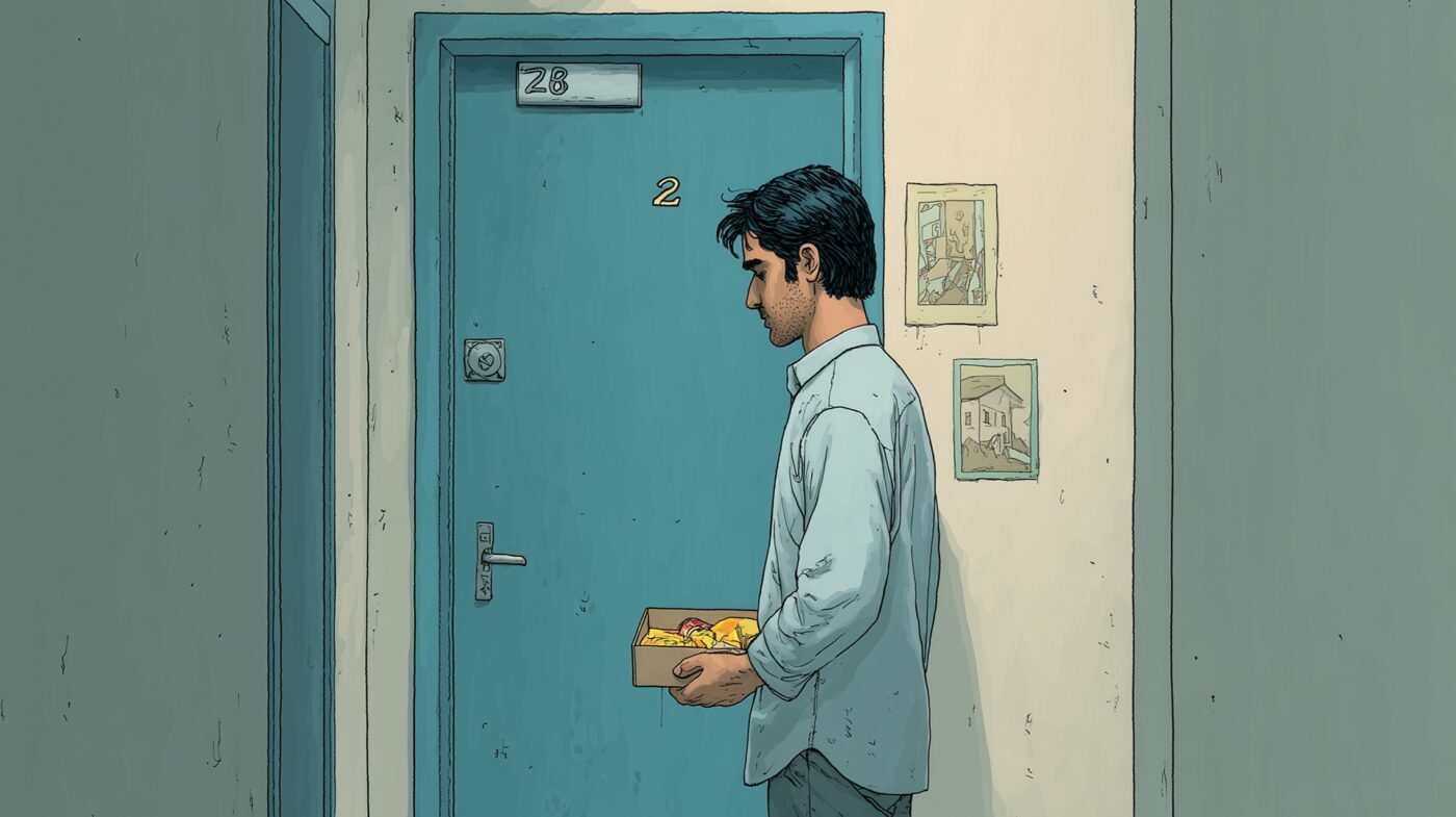 Tara stood outside the door with a box of sweets in his hand. He took a deep, apprehensive breath before ringing the bell and waited for his friend Niloy to open the door.